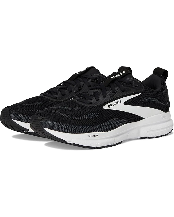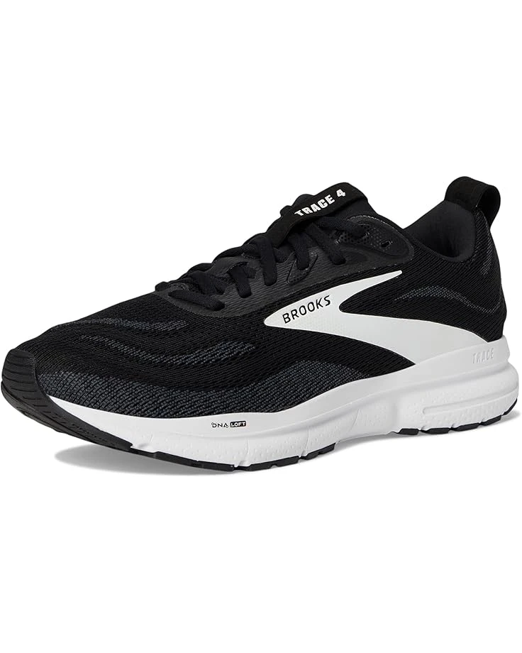 - Feel the performance wearing the ultimate Brooks® Trace 4. Crafted from rubber upper, nylon lining, EVA insole, this pair of shoes features round toe, lace-up closure, DNA Loft v2 cushioning, and brand detailing on the tongue, heel counter, and footbed.