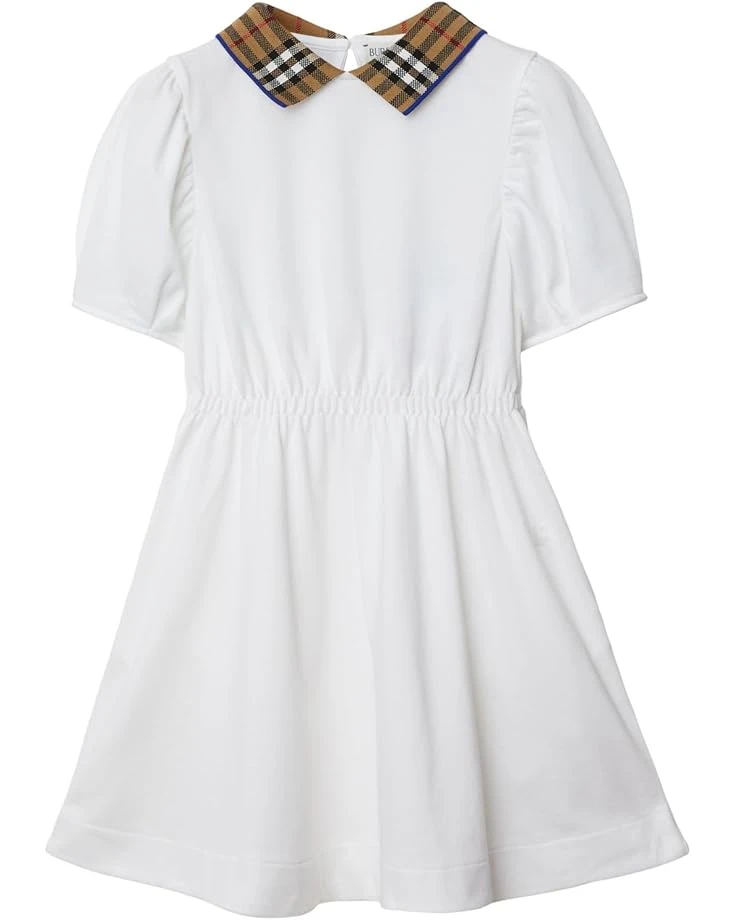 - Bring a dash of vintage chic to your little explorer’s look by opting for the Burberry® Kids Alesea Check Dress. It features a checkered collar with keyhole button closure at the back and elasticized waist for a secure fit.