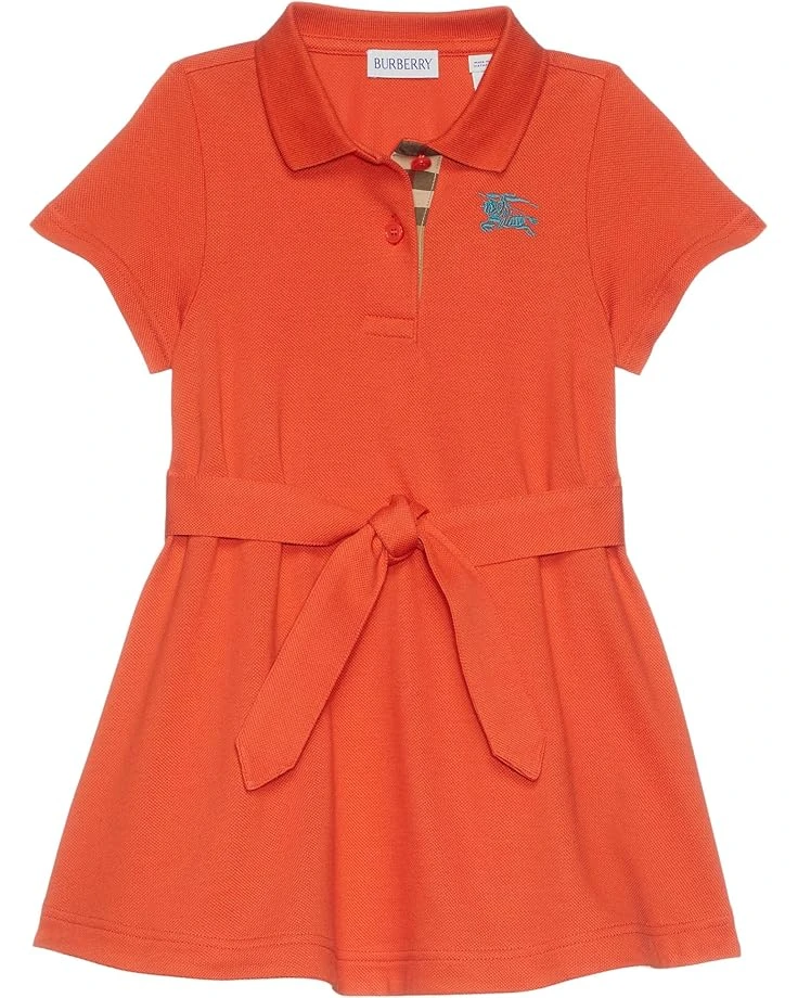 - Classic elegance meets playful charm! The Burberry® Kids Astrid Polo Dress brings a touch of sophistication to your little one’s wardrobe. Featuring the iconic equestrian knight embroidery on the chest, this dress blends timeless style with youthful flair. The collared neckline and short sleeves ensure a polished look, while the belted waist and A-line silhouette provide a flattering fit. Designed to hit just around the knee, it’s perfect for both special occasions and everyday adventures.