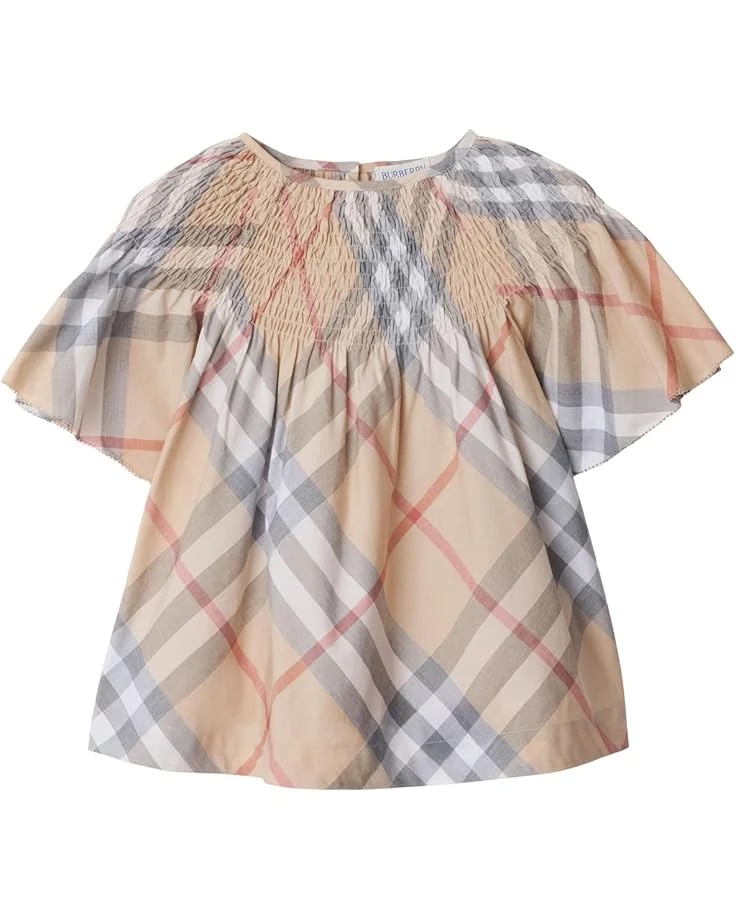 - Donne the chic and casual Burberry® Kids Cali Check Top for a stunning style statement. The classic fit top features a crew neck, smocked detail on the top, an allover checkered print, and a back-button closure.