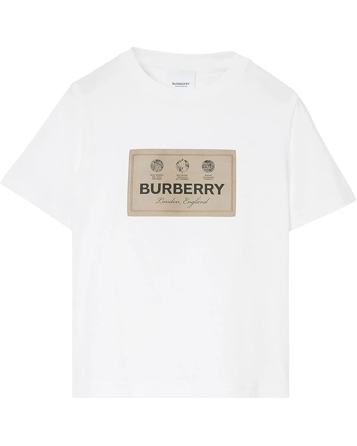 - Style a cool classic look in this pullover Burberry® Kids Cedar Twill LBL tee. This cotton tee features ribbed crew neckline, short sleeves, and brand logo text graphics design on the front.