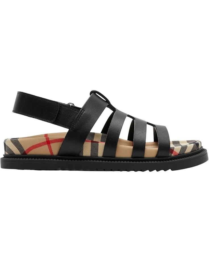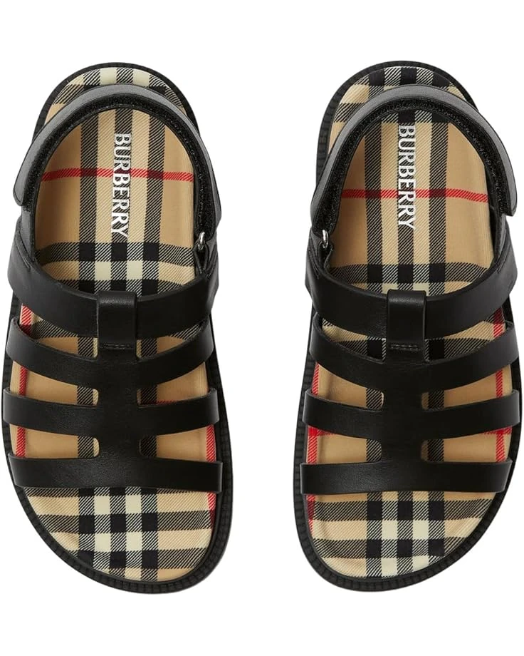 - A forever classic and iconic, the Burberry® Kids Sam Sandals are designed with a gladiator-inspired strappy leather upper with an adjustable hook-and-loop closure on the back strap. The shoes have a leather lining and insole, offering your junior a premium style along with all-day comfort.